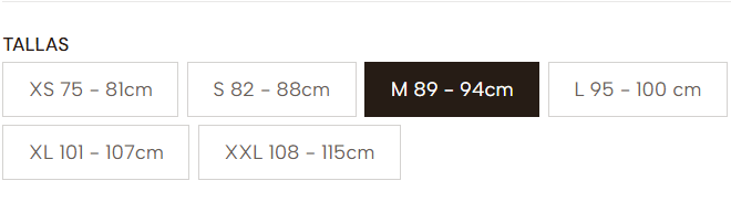 - Tercer paso: En la pagina de compra del cinturón que quieras adquirir, tienes que elegir la talla según los centímetros que te dio midiéndote con la huincha.